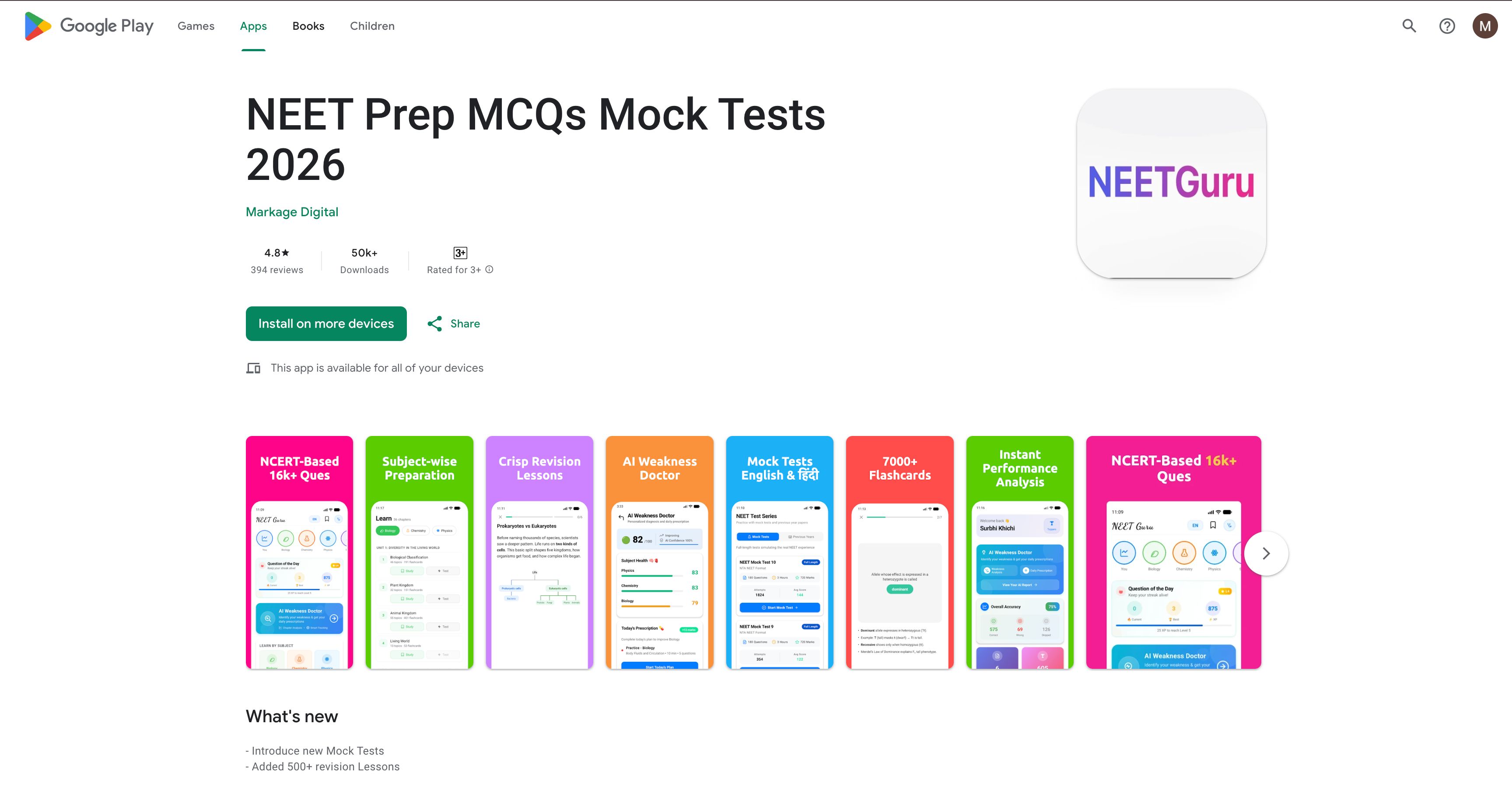 NEET preparation mobile app with AI Weakness Doctor, 16,000+ questions, 7,000+ flashcards, etc.